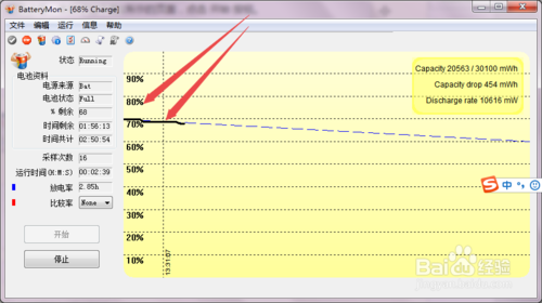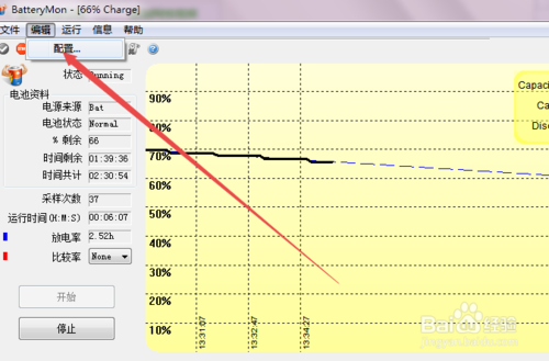然后就可以看到開始采集一些電池的信息了,其中橫坐標(biāo)表示采集時(shí)間、縱坐標(biāo)表示電池的電量。