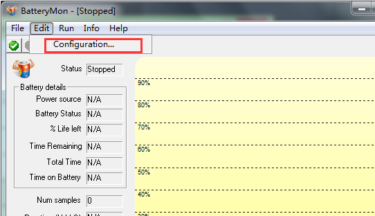 1、打開BatteryMon修復(fù)電池工具找到【Edit】按鈕,找到Configuration...單擊點(diǎn)進(jìn)去。