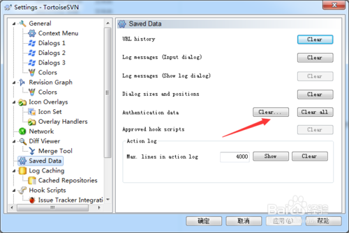 3.進(jìn)入“Saved Data”之后,找到“Authentication data”,如圖所示,點(diǎn)擊后面的“clear”按鈕。
