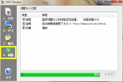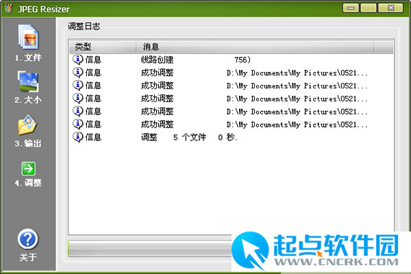 當設(shè)定完成之后,點擊“調(diào)整”按鈕即可按照前面所設(shè)置的參數(shù)進行圖片調(diào)整,并顯示調(diào)整日志,如下圖所示: