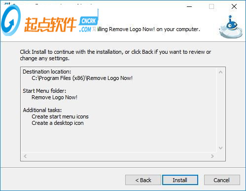 安裝預覽,可以查看RemoveLogoNow.exe安裝信息,點擊上一步可以修改,如果沒有錯誤,就點擊安裝吧