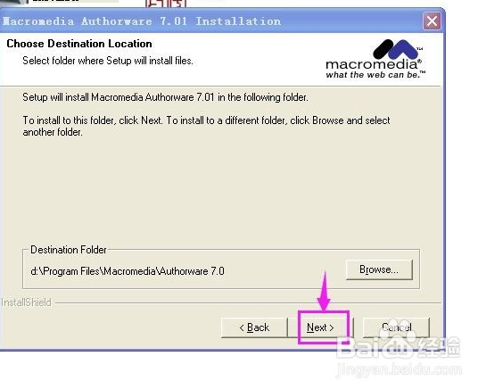 改變安裝路徑,與Authorware安裝路徑保持一致,然后按下一步;