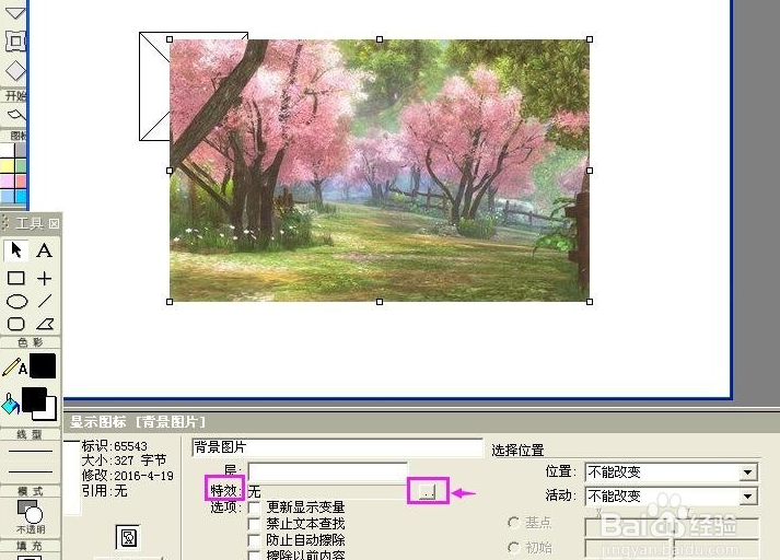 在工具箱中拉一個(gè)顯示圖標(biāo)至流程線上,將顯示圖標(biāo)命名為背景圖片;