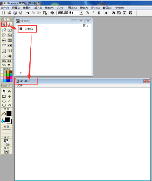 接著出現(xiàn)的就是Authorwar的程序設(shè)計(jì)窗口了;