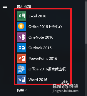 5、安裝完畢后也沒有任何提示,但是那個(gè)office圖標(biāo)會消失。然后我們點(diǎn)開開始菜單,可以在左邊的菜單欄里看到已經(jīng)安裝好的office2016,我們隨便點(diǎn)開一個(gè)。啟動(dòng)速度非???,進(jìn)入到word界面后,就能看到office2019 preview了。