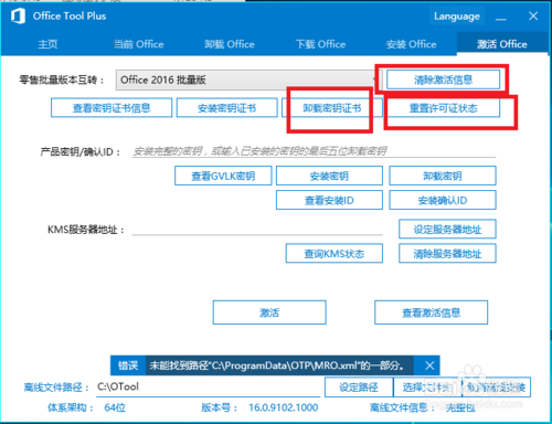 7、在實(shí)體機(jī)上安裝,需要清除原來的office2016或office2013的激活信息??梢酝ㄟ^剛才那個(gè)Office Tool Plus工具來清除,但是清除之前請備份你的激活信息,激活信息保存在C:\Windows\System32\spp\store目錄底下,把這個(gè)目錄整個(gè)備份。然后使用剛才那個(gè)工具的最后一個(gè)選項(xiàng)卡,清除所有的激活信息。