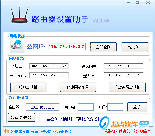 路由器設(shè)置助手是一款方便快捷的路由器設(shè)置工具,該款工具對于不會設(shè)置路由器的用戶來說,簡直就是福音,它可以幫你自動輕松的完成路由器的調(diào)試,方便快捷,小白用戶只用單機(jī)界面檢測按鈕,系統(tǒng)會自動識別電腦IP和其他信息,一鍵操作成功。