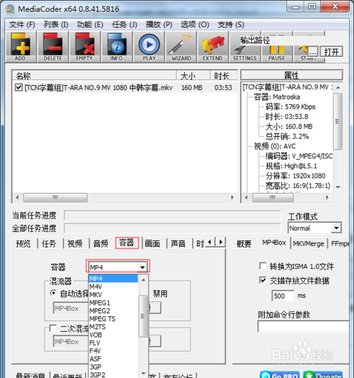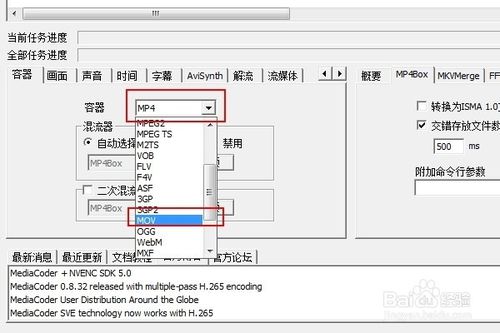 點(diǎn)擊容器選項(xiàng),選擇輸出的視頻格式