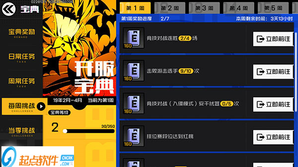 除了每天的日常任務(wù)外,玩家每個賽季的每一周也會接取各種任務(wù),這些任務(wù)相較于日常任務(wù)而言,有的任務(wù)稍微難些,但只要花點(diǎn)時間,還是很容易完成。每周任務(wù)只提供寶典經(jīng)驗(yàn)值獎勵,每周結(jié)束后,上一周的任務(wù)將無法完成,所以我們要及時完成每周任務(wù)。
