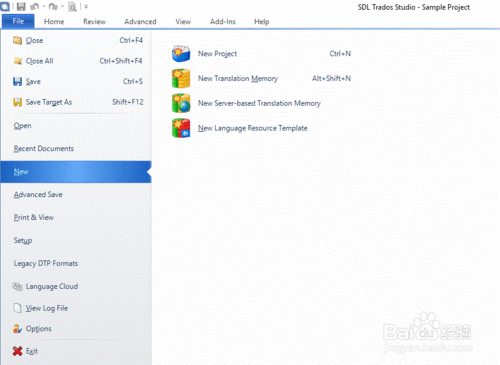 如何在Trados 中創(chuàng)建新翻譯任務(wù),術(shù)語(yǔ)庫(kù)&記憶庫(kù)開(kāi)啟Trados Studio軟件,選擇“文件(File)”---->“新(New)”---->“新項(xiàng)目(New Project)”。