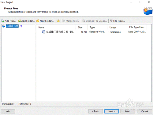 在彈出的“項(xiàng)目文件夾(Project File)”中,點(diǎn)擊“添加文件(Add File)”,選擇需要翻譯的文件后,點(diǎn)擊“下一步(Next)”。