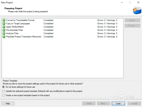 當(dāng)Trados完成對(duì)項(xiàng)目的準(zhǔn)備后,點(diǎn)擊“關(guān)閉(Close)”。
