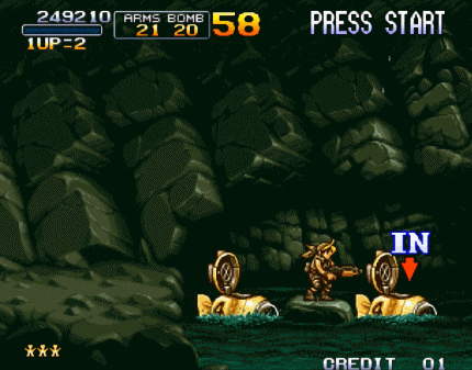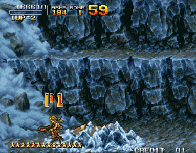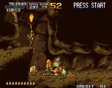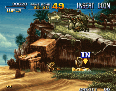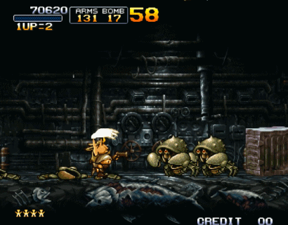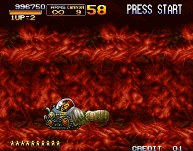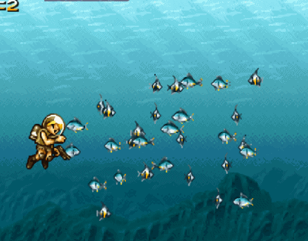 Slug Mariner:裝備火神炮和魚雷的小型潛艇,但火神炮的子彈會(huì)因?yàn)樗淖枇Τ蕭佄锞€狀彈道。Elephant Slug:裝備火神炮的大象,無裝甲,不能跳,若得到“電池”或“火辣椒”的強(qiáng)化,副武器將變成從鼻子里射出的電流或火焰。