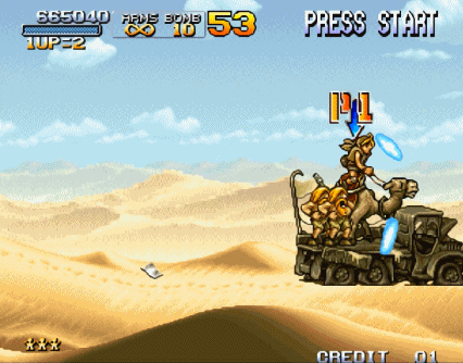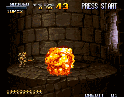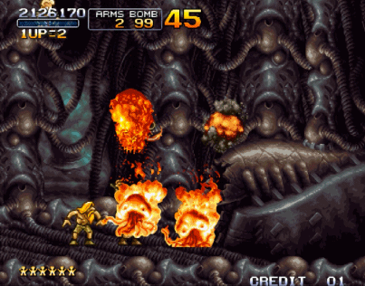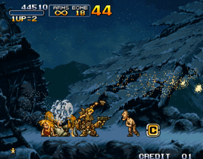 采用經(jīng)典的2D像素點(diǎn)繪畫風(fēng),SNK御用畫師作畫,場景角色完美還原,槍械戰(zhàn)車悉數(shù)登場。