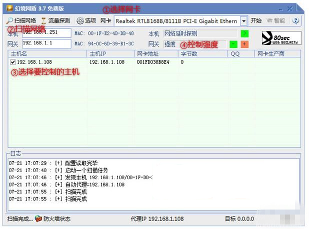 默認(rèn)控制強(qiáng)度為10,不要一下子就把強(qiáng)度調(diào)得很高!網(wǎng)盾的控制效果有數(shù)秒到幾十秒的延遲,調(diào)過(guò)高了被你控制的機(jī)器差不多就斷網(wǎng)了,也要為別人想想。上網(wǎng)人少的情況下強(qiáng)度2,不能明顯控制的時(shí)候再往上提高。調(diào)到最大還不能控制,參見(jiàn)第1條。