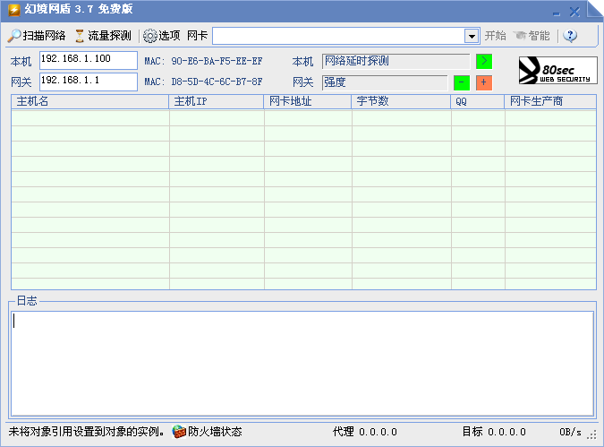 幻境網(wǎng)盾是一款可突破任意ARP防火墻,以限制流量為目標(biāo)的簡(jiǎn)單網(wǎng)絡(luò)管理軟件。主要用于限制局域網(wǎng)內(nèi)其它計(jì)算機(jī)的網(wǎng)速。以提高自身計(jì)算機(jī)網(wǎng)速。