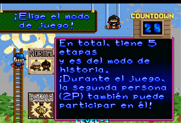 劇情冒險(Normal):跟著劇情進(jìn)行闖關(guān),可以叫上好友一起冒險,怪物頗多,且存在BOSS挑戰(zhàn)模式(Batalla):挑戰(zhàn)擁有不同能力的角色,隨著進(jìn)度的進(jìn)行,挑戰(zhàn)人數(shù)會滿滿增加。同時也可以進(jìn)行雙人對戰(zhàn)。