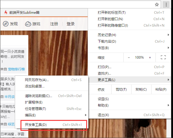2、接著在主界面右上角的菜單中打開“開發(fā)者工具”,也可以直接用快捷鍵“F12”打開;