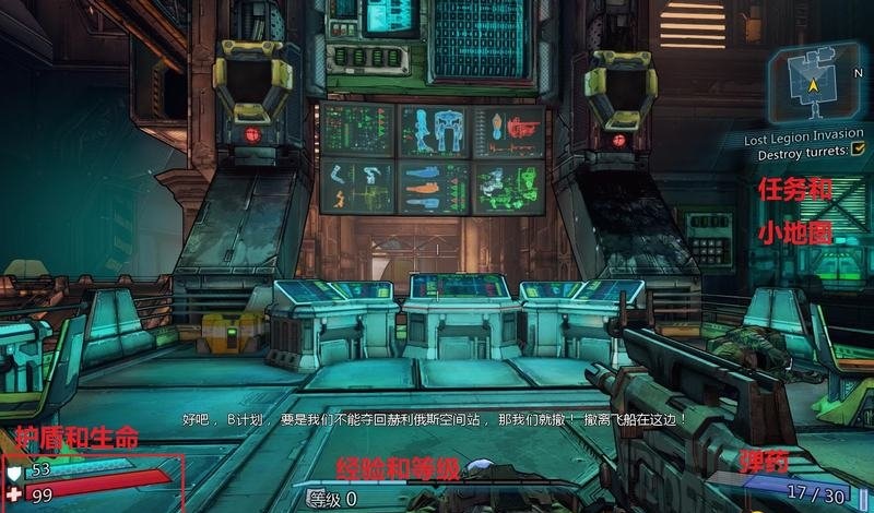 左下角是護(hù)盾和生命,受傷先消耗可以自動(dòng)恢復(fù)的護(hù)盾。