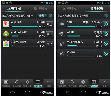 所以,節(jié)省電量就需要從以上幾個因素出發(fā),對癥下藥。點心省電推出了“全面耗電檢測”的功能,它可以提供手機續(xù)航時間,全面分析電量狀況,羅列出當下影響手機電量的因素。而我們則可以根據(jù)點心省電的提示進行相關(guān)處理。例如:我們可以關(guān)掉正在耗電的應(yīng)用,關(guān)閉暫時不需要的服務(wù)等。此外,點心省電還推出了耗電統(tǒng)計的功能,能夠更詳細地將電量消耗分布圖呈現(xiàn)在我們面前。我們能夠看到硬件和軟件分別耗去了多少電量。我們可以重新設(shè)置耗電多的模塊,或者改善自己的操作習慣。