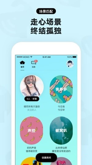 場景匹配,走心場景,終結(jié)孤獨(dú)。聊天房間,三五成群,暖心陪伴。