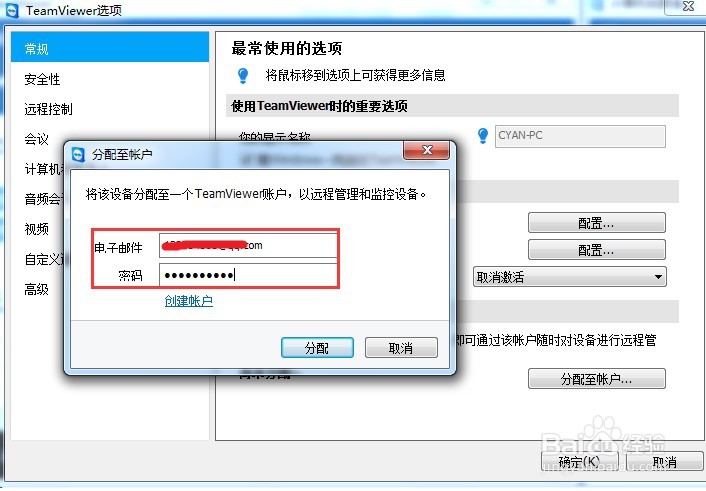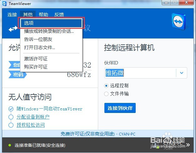 注冊一個TeamView賬號。打開其他--選項。