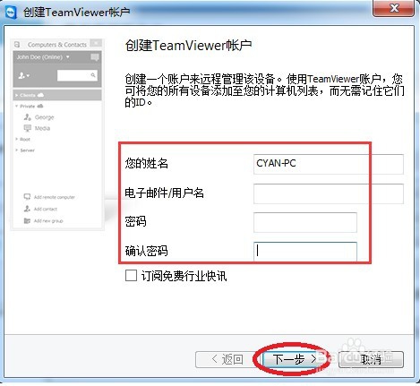 輸入你的姓名,郵箱和密碼,點(diǎn)擊下一步。