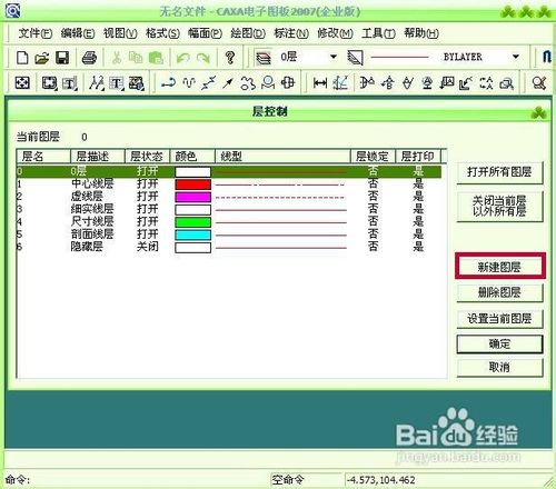點(diǎn)擊層控制按鈕會(huì)出現(xiàn)層控制窗口,在層控制窗口點(diǎn)擊右邊的新建圖層按鈕