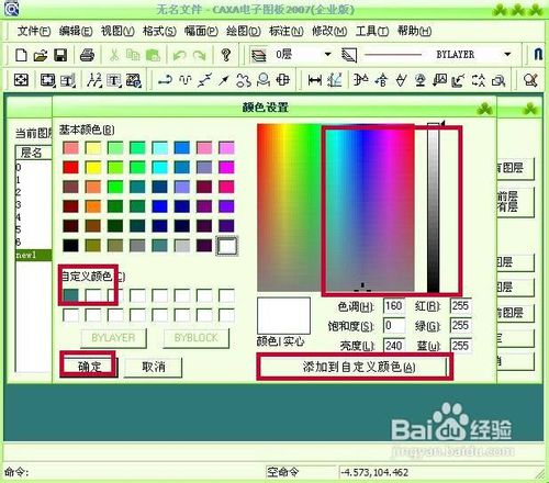 點(diǎn)擊顏色以后出現(xiàn)顏色設(shè)置窗口,在顏色窗口的右邊設(shè)置好顏色以后點(diǎn)擊下面的添加到自定義顏色按鈕,顏色添加到左邊的自定義顏色窗口以后點(diǎn)擊下面你的確定按鈕