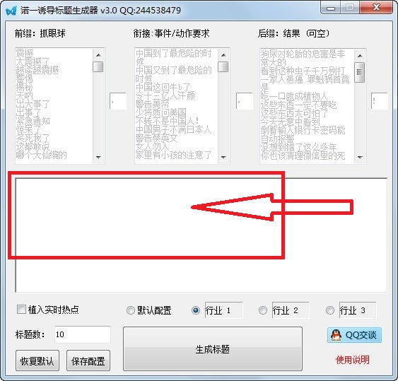 諾一誘導(dǎo)標題生成器是一款自動生成各種抓眼球標題的小工具,可以自動生成標題,對于編輯人員就是一款利器,為了吸引公眾視線,標題寫得都比較夸張,想要達到這樣的效果,你可以試試這個小工具。