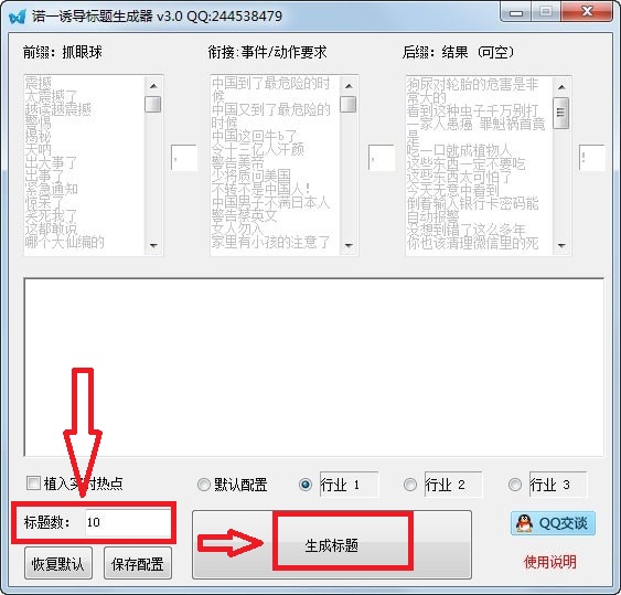 4、輸入要生成的標題數(shù)量,最后點擊生成標題