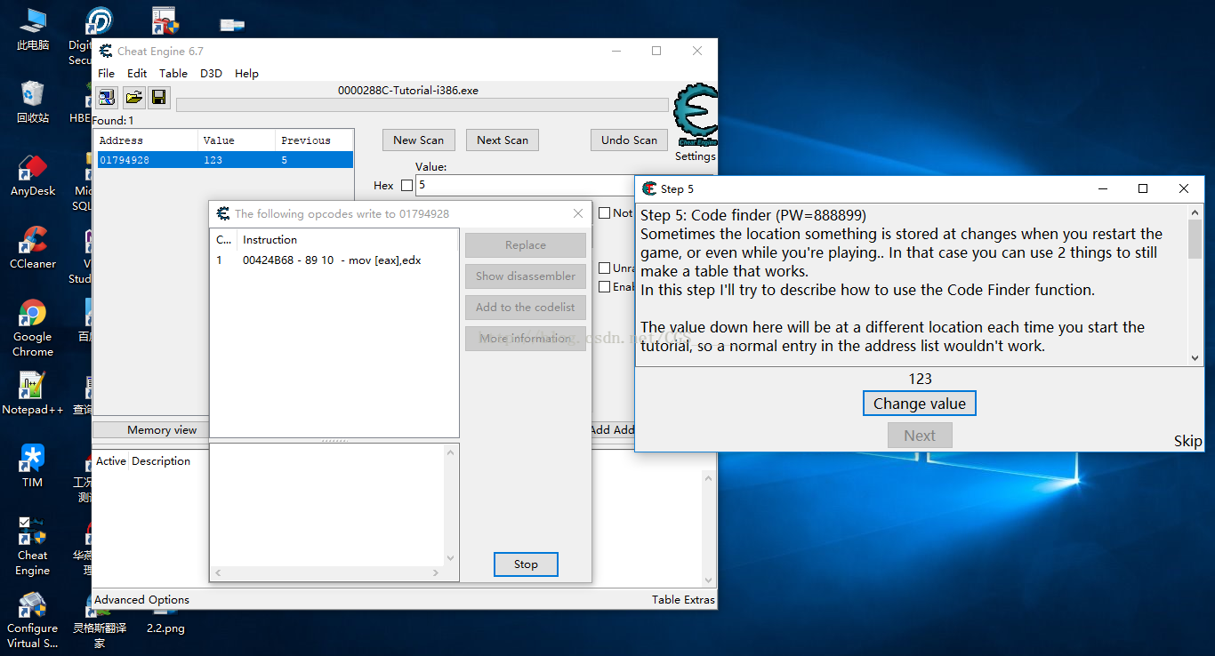 a)首先尋找Change Value改變值這一操作的Address,這一步與前面的介紹的步驟相同,不再描述,如下圖: