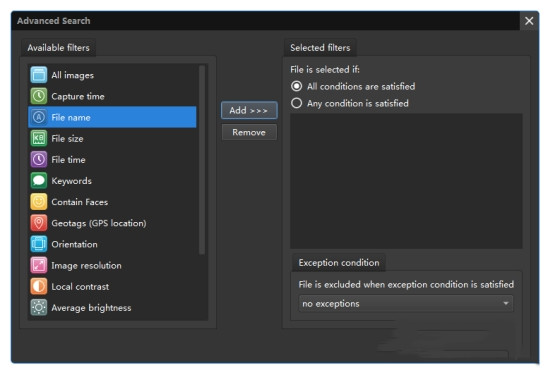 通過相機(jī)類型,快門速度,曝光參數(shù)等查找特定圖像...
