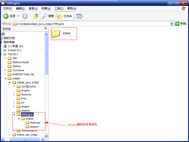 假設把插件安裝在%ECLIPSE_HOME%\YMPlugins目錄中,則YMPlugins的目錄結構一定要是這樣的: