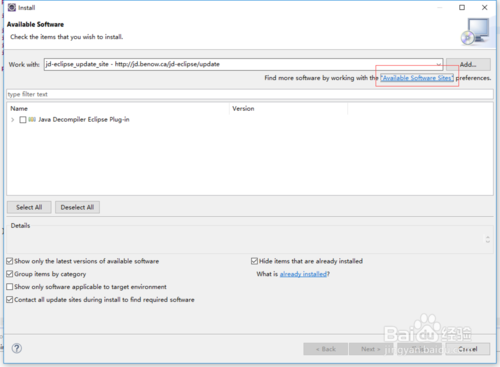 4、然后點擊Available Software Sites,進入如圖頁面;