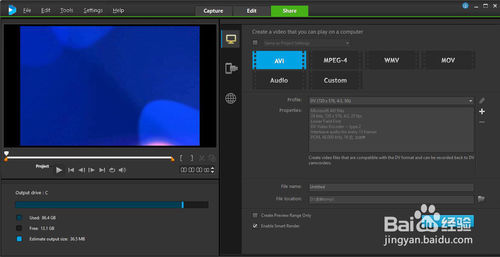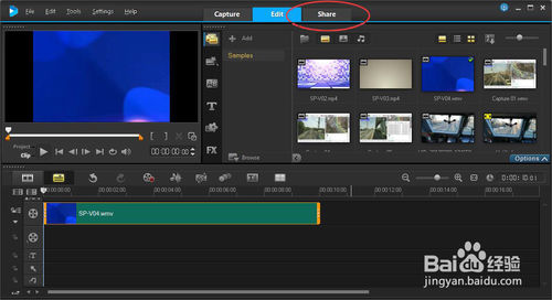打開會(huì)聲會(huì)影軟件,編輯視頻完成以后,點(diǎn)擊上方的Share標(biāo)簽。