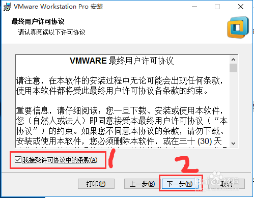 在下一個(gè)窗口,勾選 我接受許可協(xié)議中的條款,點(diǎn)擊下一步