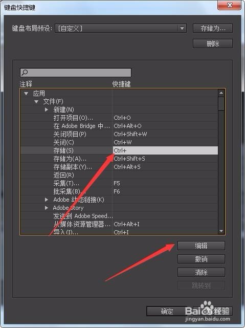 其中點擊一個命令并點擊編輯可更改快捷鍵組合。