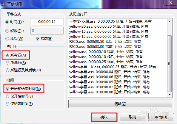 平移時(shí)間的話是一般是平移開始和結(jié)束時(shí)間,不會(huì)單一平移開始或者結(jié)束時(shí)間,如果不知道字幕提前或者延遲的時(shí)間,建議使用參數(shù)設(shè)置成12-15,也就是120ms-150ms,慢慢測(cè)試一下,直到感覺合適為止