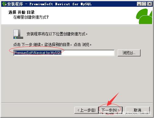 6、選擇開始目錄,點擊下一步,如下圖所示: