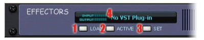 效果器模塊使用 VST 效果器對聲音進(jìn)行處理,然后再送回調(diào)音臺模塊。效果器模塊可以加載兩個VST 插件,分別對應(yīng)調(diào)音臺的 AUX1 和 AUX2。