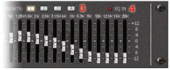 圖示均衡器連接在功放之前,用來調(diào)節(jié)聲音的頻響細(xì)節(jié)。本圖示均衡為 31 段,可存儲 4 個預(yù)設(shè)。