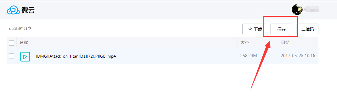 3、保存的方法也很簡(jiǎn)單,先登錄我們的騰訊微云賬號(hào),接著在別人分享視頻的界面勾選上該視頻,之后點(diǎn)擊“保存”按鈕,最后選擇保存的位置就可以了;