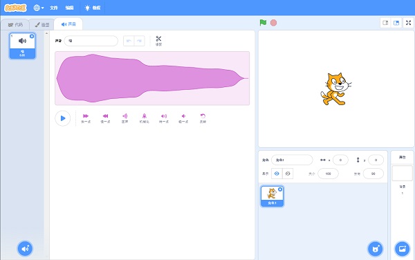 Scratch 3.0還重新設計了聲音編輯器,錄音、剪輯功能及多種聲音元素,包括: