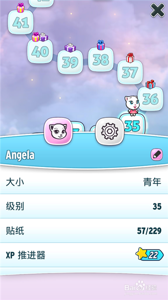 七、點(diǎn)擊視屏按鈕就可以看安吉拉相關(guān)視頻短片、每升一次極,系統(tǒng)會(huì)送相應(yīng)的安吉拉貼紙,從復(fù)貼紙可以出售或者賣給別人換的金幣。