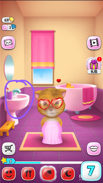 2、然后進(jìn)入衛(wèi)生間了,點(diǎn)擊浴缸,讓貓咪進(jìn)去。