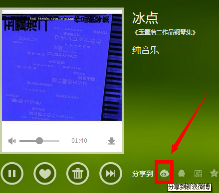 比如分享到微博,寫上一句話,然后點擊分享按鈕,即可分享,你的粉絲將會和你一起感受音樂的美妙哦~