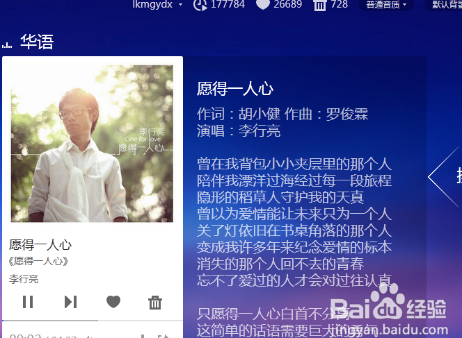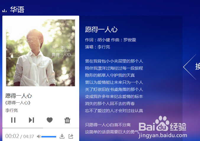 4、下一首:不喜歡這首歌? 沒關(guān)系,暫時不想聽,可以先跳過,點擊該按鈕進入下一首吧, 百度同樣會記錄和分析您不喜歡那些歌曲。