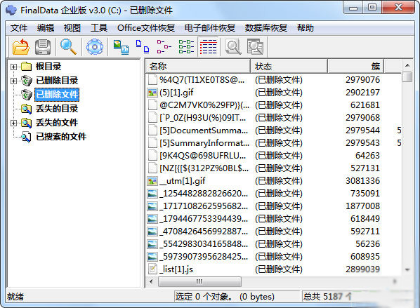 Final Data數(shù)據(jù)恢復(fù)軟件在完成所有的檢查后會(huì)將目標(biāo)任務(wù)驅(qū)動(dòng)器的所有文件分類后以表格形式詳細(xì)列出來,包括正常的目錄、已刪除的目錄和刪除的文件等大類。在表格右邊的詳細(xì)列表中列明了所有的文件資料,包括文件的名稱、大小、目前狀態(tài)(是否破損)和創(chuàng)建時(shí)間,最關(guān)鍵是文件所在的物理簇位置,這樣恢復(fù)這個(gè)文件就不是什么問題了!