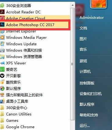 安裝完成后如果桌面沒有PS cc2017的快捷啟動方式,在開始菜單里面找到即可。
